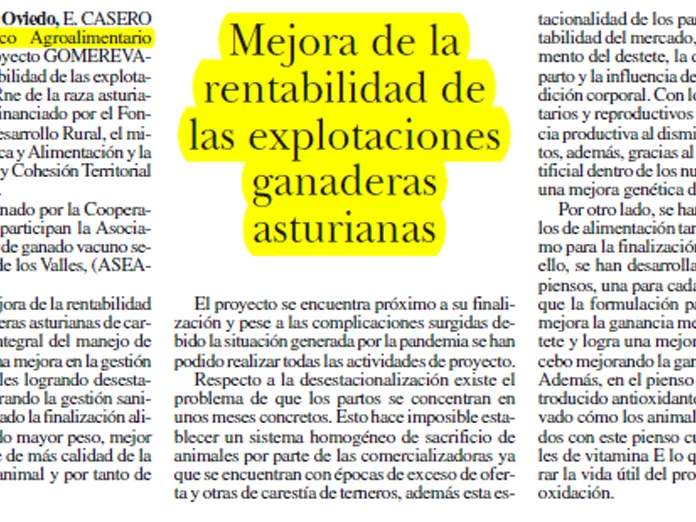 El Grupo Operativo de Innovación MEREVACAR es un proyecto piloto, que se desarrolla en el suroccidente asturiano y está destinado a la mejora de la rentabilidad de las explotaciones cárnicas de las razas autóctonas asturianas.